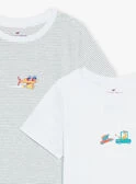 2 T-shirts écrus à imprimé à rayures et motifs vaisseau spatial et voitures.